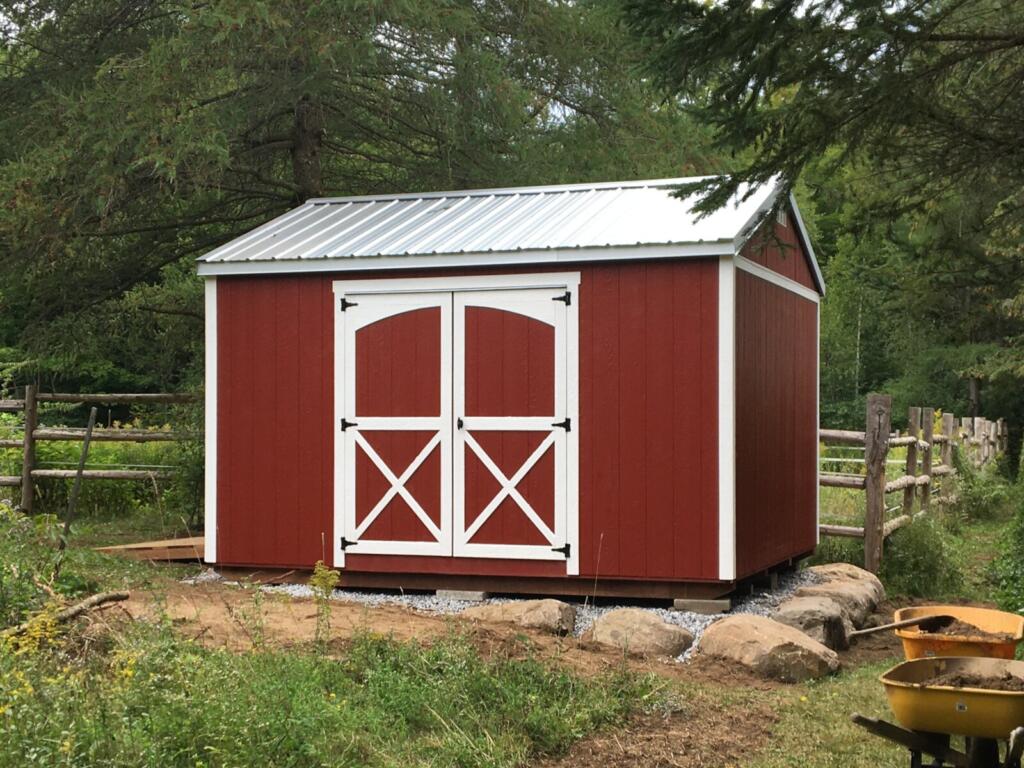 An ideal storage space for those seeking a mix of functionality and rustic charm. Comfortable interior height of 6 feet 7 inches under the storage loft, perfect for storing your tools, equipment, and more. Available in dimensions of 8 feet to 12 feet wide and up to 20 feet long.