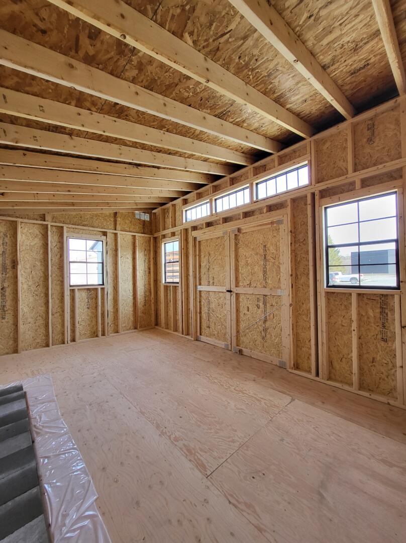 Cette remise est fabriquée avec un revêtement LP SmartSide garanti 50 ans, un toit en tôle noire garanti 40 ans, ainsi qu’une structure solide en 2×4 aux 16″. Le plancher repose sur des solives traitées 2×6 aux 16″, assurant stabilité et résistance à l’humidité. Deux fenêtres incluses apportent luminosité et ventilation naturelle, ce qui rend l’espace agréable et polyvalent.